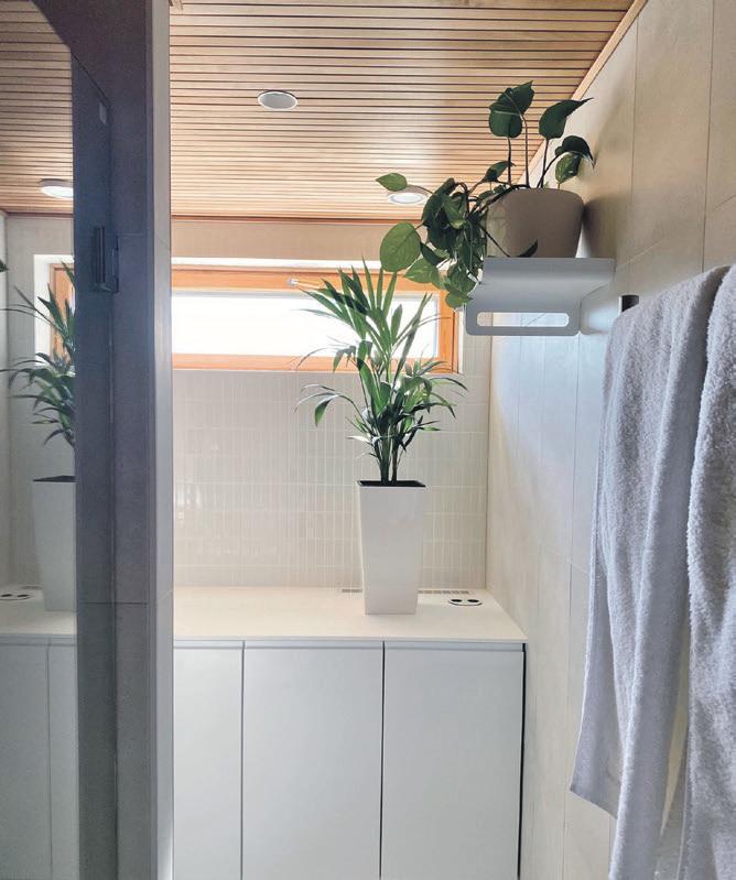tiikan ja skandinaavisen minimalismin. Kylpyhuoneisiin tehdään spa-tunnelmaa, puupinnoissa suosittuja ovat tammi ja pähkinä. Pantonen vuoden väri on rauhallisuutta korostava Cloud Dancer, murrettu valkoinen.