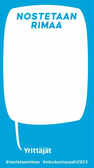 Kun tulee salille, on pakko keskittyä. Mieli nollaantuu, sitä unohtaa arjen huolet siksi aikaa.” ● PIENIÄ JA SUURIA ● USEITA ERI VÄREJÄ ● MUOVITASKUJA POHJOIS-SUOMEN JÄLLEENMYYJÄ Mainospaja Mäkelin Oy Hautakorventie 15, 90620 OULU Puh. 040-720 9264 www.makelin.net MAINOSTELINEITÄ 176 yrittäjyys kantaa suomea. KANSANEDUSTAJA, DI YRITTÄJÄPERHEEN JÄSEN radiokaleva.fi @radiokaleva Laita viestiä studioon: 044 095 4495 RAAHE 95,7 MHz Aaltoja, jotka myös keikuttaa. OULU 95 MHz