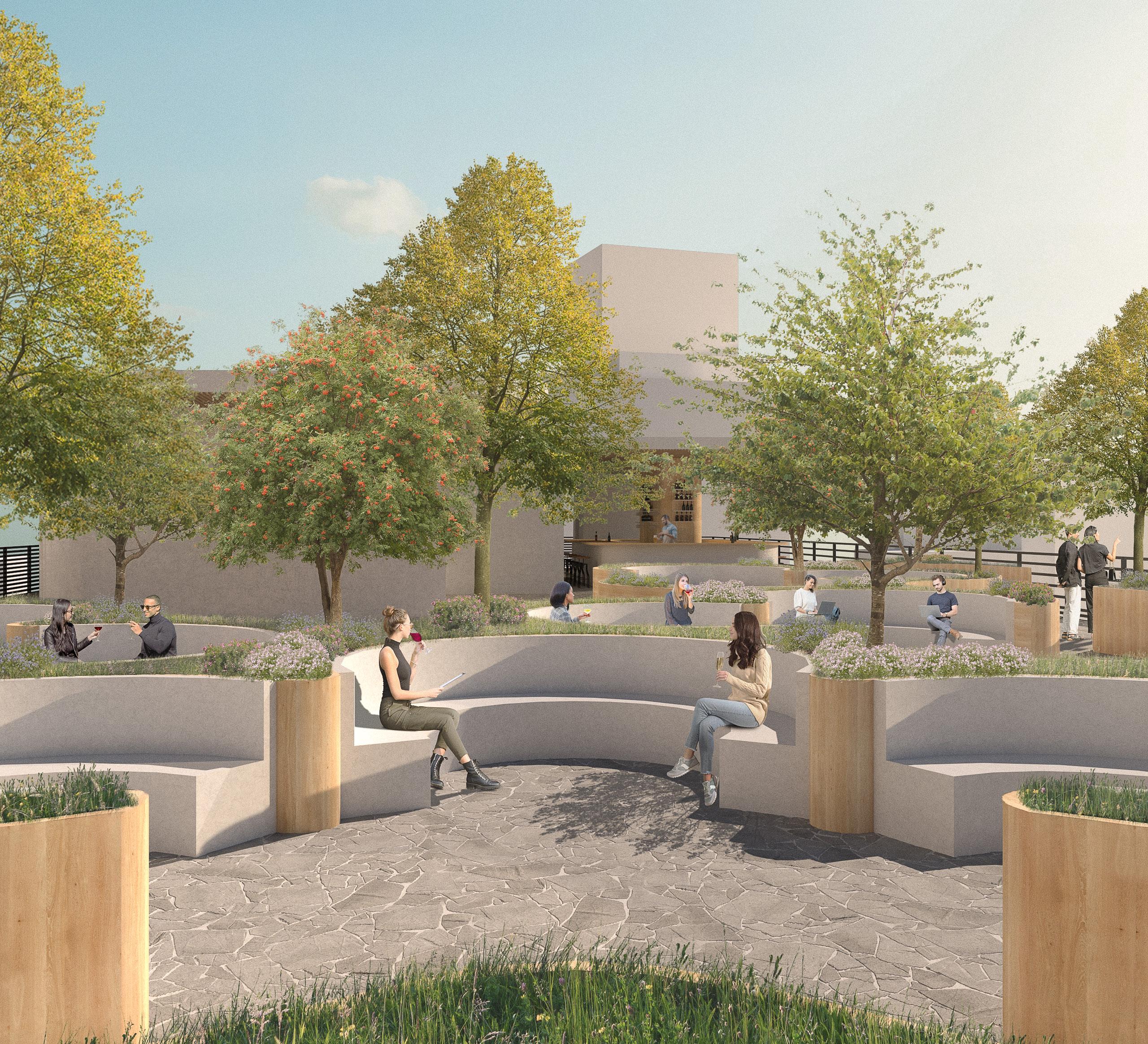 Introducing glass cubes allows visitors clear views of 6th and Broadway, while encouraging exploration