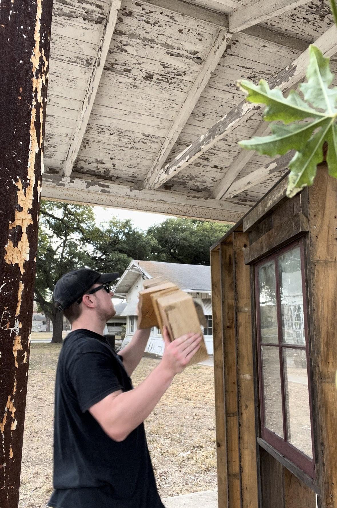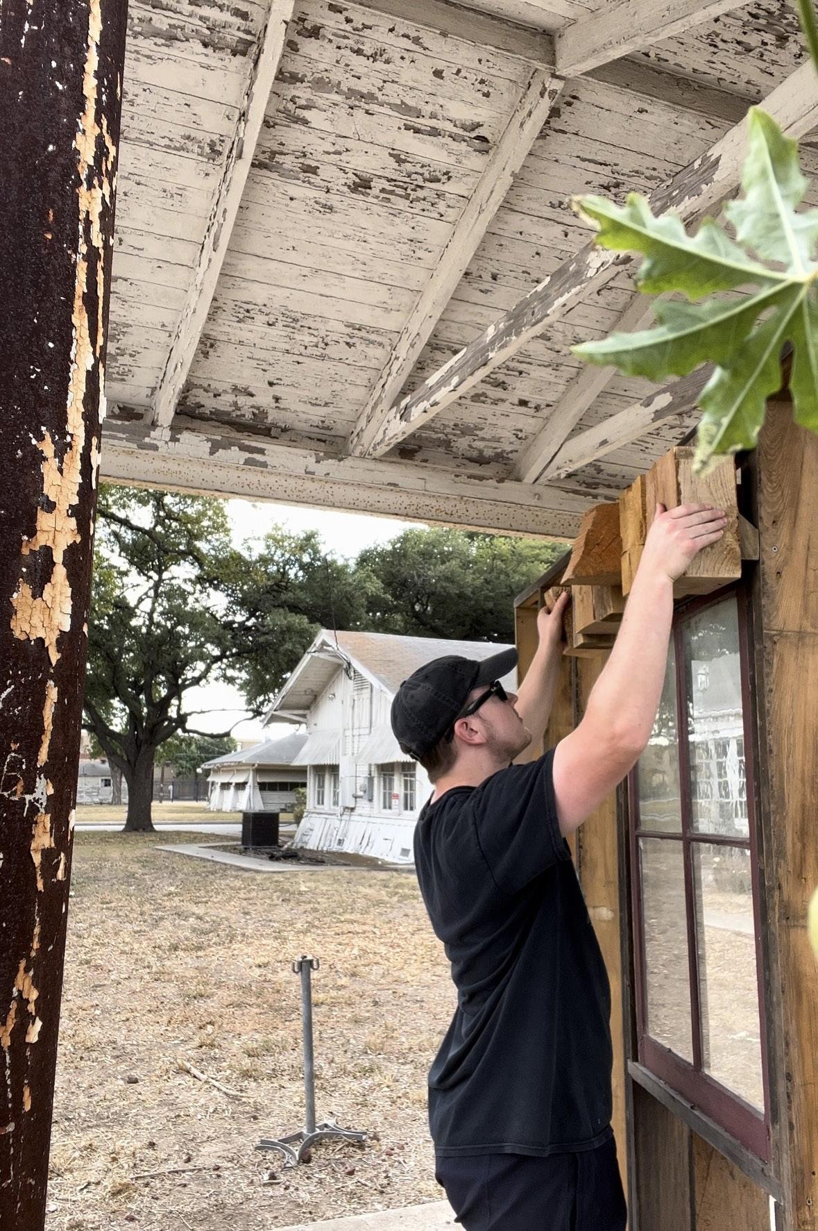 Step 2: The demonstrator walls are built using reclaimed wood donated by OHP in San Antonio.