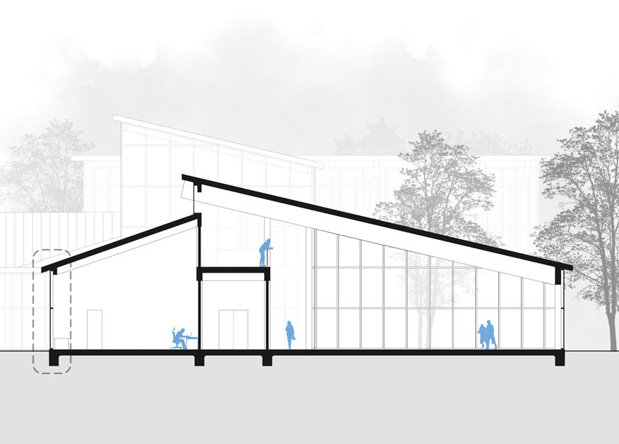 The program also includes a small administrative area, room for potential future expansion, a café, and a live/work space. With nearby amenities like the River Walk and Lone Star, the site fosters a strong interactive environment for the community.