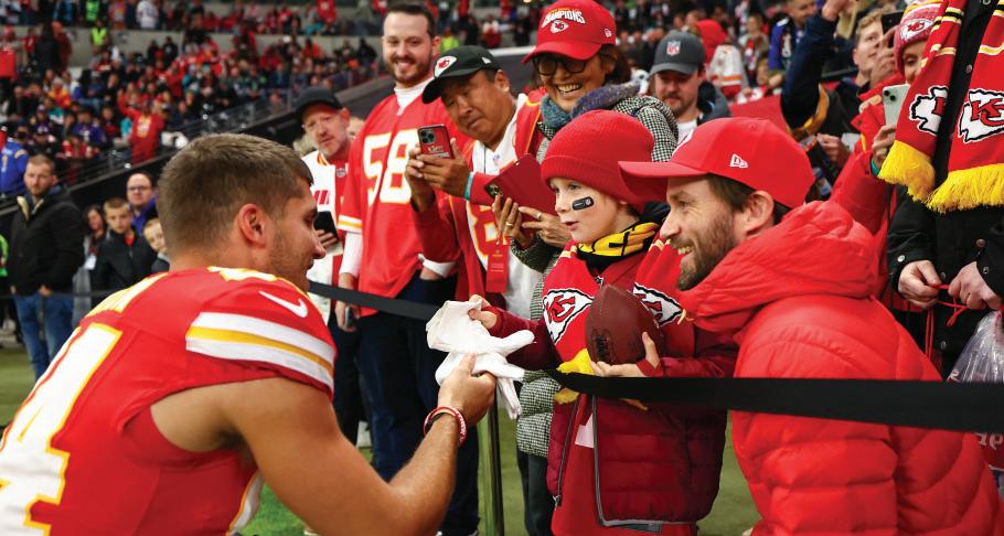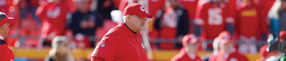 Reid is in his 33rd NFLseason, 26th as a head coach and 12th with the Chiefs. Since 2013, Reid tallied 138 regular season wins, making him the winningest coach in franchise history. Reid’s 79 wins at GEHA Field at Arrowhead Stadium passed Marty Schottenheimer for most wins at the home of the Chiefs (64). In 2019, Reid led the Chiefs to their first Super Bowl appearance and victory in 50 years, bringing the Lombardi Trophy back to Kansas City for the first time since the 1969 season. Additionally, the Chiefs 35-24 victory over the Tennessee Titans in the AFC Championship Game brought the Lamar Hunt Trophy to Kansas City for the first time ever. Under Reid, the Chiefs have made the playoffs 10-of-11 seasons, including a franchise best 14-2 record in 2020. Reid has led the Chiefs to backto-back Super Bowl appearances twice (LIV and LV, LVII and LVIII) including back-to-back victories in Super Bowl LVII and Super Bowl LVIII.