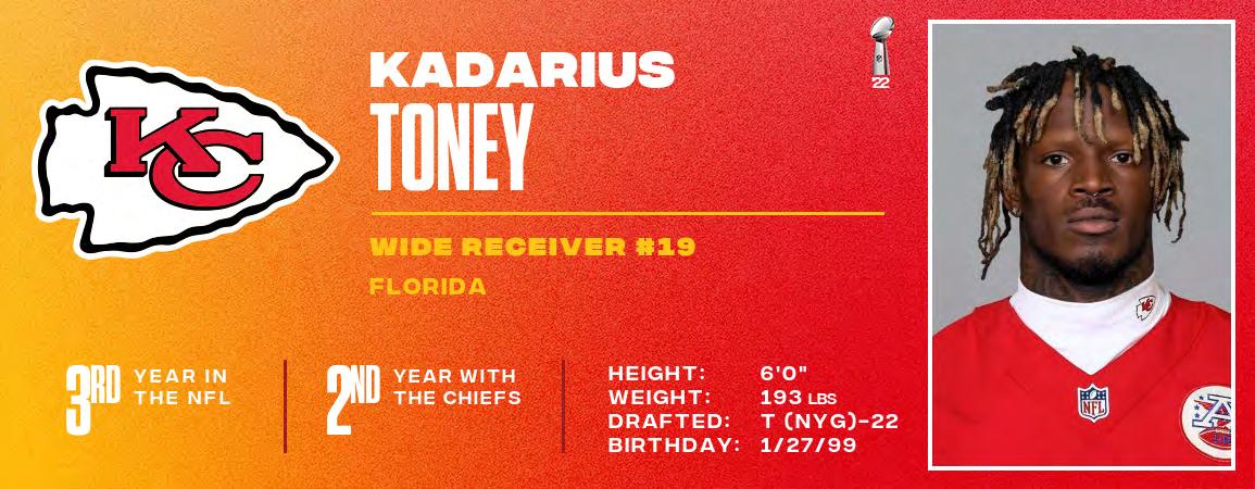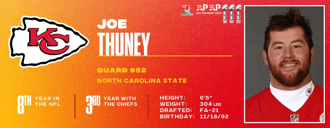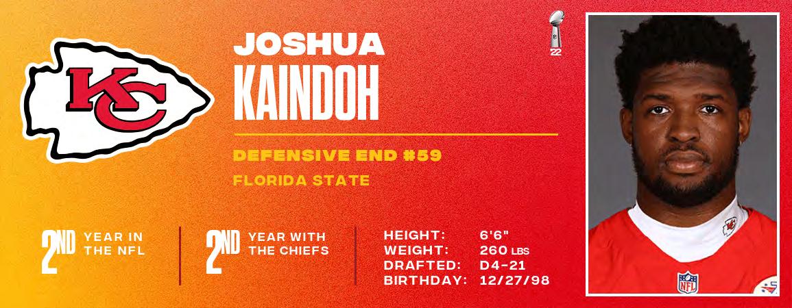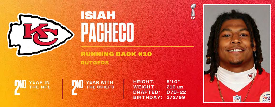 Chiefs QB Patrick Mahomes is in his sixth season as the club’s starting quarterback. As the starter, Mahomes has led the team to five-consecutive home AFC Championship Games, three Super Bowl appearances and earned NFL MVP (2018, 2022) and Super Bowl MVP honors (2019, 2022). Since 2018, he leads the league in yards (23,957), touchdowns (192), 25+ yard completions (206) and first down throws (1,183). With only 48 interceptions (since 2018), he owns a +144 TD/INT ratio, the highest mark of any active QB in that span. He owns 41 career games of 300+ passing yards. TE Travis Kelce has recorded an NFL record seven-straight 1,000yard receiving seasons (1,338 yards in 2022). He owns 35 games with 100+ receiving yards (most in NFL history for a tight end) and has caught at least one pass in 161 consecutive games (reg. and postseason). Since entering the NFL in 2013, Kelce leads all tight ends in receiving yards (10,344) and receptions (814). He ranks first in touchdowns (69) and catches of 25+ yards (81). Defensively, DT Chris Jones recorded 15.5 sacks last season and CB L'Jarius Sneed recorded a team-high three INTs.