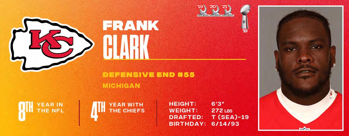 The Kansas City Chiefs return to GEHA Field at Arrowhead Stadium to take on the Los Angeles Rams this Sunday. Kickoff on FOX is slated for 3:25 p.m. CT. KC is 2-0 against the NFC West this season with wins in Arizona (44-21) and in San Francisco (44-23). The Chiefs and Rams last met in LA on Nov. 19, 2018 when the Rams defeated the Chiefs 54-51. KC enters Sunday’s game with an 8-2 record, the best mark in the AFC. The Chiefs are looking to defend their stretch of six-straight AFC West Division championships. Since 2015, Kansas City has tallied a 39-6 record (.867) against AFC West opponents, the NFL’s best divisional record over an eight-year span since divisional realignment in 2002. In 2021, following a 12-5 season and the No. 2 seed in the AFC, Kansas City advanced to host it’s fourthstraight AFC Championship Game at GEHA Field at Arrowhead Stadium. Under Head Coach Andy Reid, KC has qualified for the postseason eight times in nine seasons and has won 10+ games each of those years. Reid owns 260 career victories (regular and postseason combined). He ranks fifth on the NFL’s all-time wins list. He has tallied 111 regular season wins in Kansas City.
