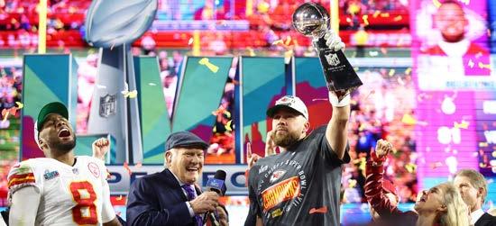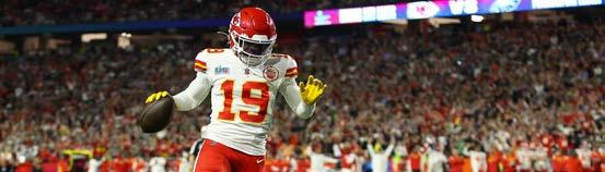 Chiefs QB Patrick Mahomes is in his sixth season as the club’s starting quarterback.Asthestarter,Mahomeshasledtheteamtofive-consecutive home AFC Championship Games, three Super Bowl appearances and earnedNFLMVP(2018,2022)andSuperBowlMVPhonors(2019,2022). Since2018,heleadstheleagueinyards(24,760),touchdowns(199),25+ yardcompletions(213)andfirstdownthrows(1,219).Withonly50interceptions(since2018),heownsa+149TD/INTratio,thehighestmarkof any active QB in that span. He owns 42 career games of 300+ passing yards.TETravisKelcehasrecordedanNFLrecordseven-straight1,000yardreceivingseasons(1,338yardsin2022).Heowns35gameswith100+ receivingyards(mostinNFLhistoryforatightend)andhascaughtatleast one pass in 163 consecutive games (reg. and postseason). Since enteringtheNFLin2013,Kelceleadsalltightendsinreceivingyards(10,439) andreceptions(825).Heranksfirstintouchdowns(71)andcatchesof25+ yards(81).Defensivelyin2023,theChiefsrankfourthintheNFLinpoints allowed(13.3ppg)andhavegivenupthreeTDsinthefirstthreegames.