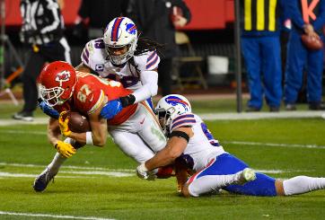 100-Yard Receivers (20) Date Opponent Player Rec. Yds. Avg. LG TD Result 1. 12/22/68 @ Oakland Otis Taylor 4 117 29.3 55 0 L,6-41 2. 12/25/71 Miami Ed Podolak 8 110 13.8 29 1 L,24-27 (2OT) 3. 12/25/71 Miami Elmo Wright 3 104 34.7 63 0 4. 1/5/91 @ Miami Stephone Paige 8 142 17.8 33 1 L,16-17 5. 12/31/94 @ Miami Kimble Anders 6 103 17.2 57t 1 L,17-27 6. 1/4/98 Denver Andre Rison 8 110 13.8 34 0 L,10-14 7. 1/4/14 @ Indianapolis Dwayne Bowe 8 150 18.8 63 1 L,44-45 8. 1/9/16 @ Houston Travis Kelce 8 128 16.0 48 0 W,30-0 9. 1/12/19 Indianapolis Travis Kelce 7 108 15.4 30 0 W,31-13 10. 1/20/19 New England Sammy Watkins 4 114 28.5 54 0 L,31-37 OT 11. 1/12/20 Houston Travis Kelce 10 134 13.4 28 3 W,51-31 12. 1/19/20 Tennessee Sammy Watkins 7 114 16.3 60t 1 W, 35-24 13. 2/2/20 San Francisco Tyreek Hill 9 105 11.7 44 0 W,31-20 14. 1/17/21 Cleveland Tyreek Hill 8 110 13.8 26 0 W,22-17 15. 1/17/21 Cleveland Travis Kelce 8 109 13.6 24 1 16. 1/24/21 Buffalo Tyreek Hill 9 172 19.1 71 0 W,38-24 17. 1/24/21 Buffalo Travis Kelce 13 118 9.1 17 2 18. 2/7/21 @ Tampa Bay Travis Kelce 10 133 12.3 33 0 L,9-31 19. 1/16/22 Pittsburgh Travis Kelce 5 108 21.6 48t 1 W,42-21 20. 1/29/22 Cincinnati M. ValdesScantling 6 116 19.3 29 1 W,23-20