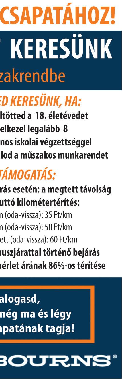 2 műszakos munkarendbe operátorokat – alapbér 375.000 - 442.000 Ft/hó műszakpótlék 60%, jelenléti prémium, teljesítmény prémium, 13. havi juttatás