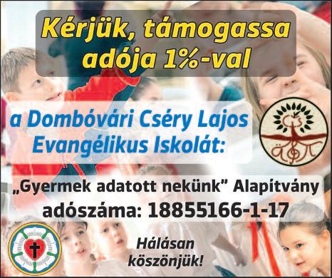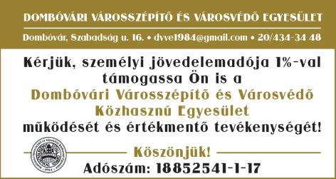 Újságunkban folyamatosan kedvezményes hirdetési lehetőséget biztosítunk a szervezeteknek az adó 1%-ért folytatott kampányuk során, valamint hirdetőink neve, adószáma és számlaszáma május 20-ig olvasható a www infodombovar hu oldalon is a Cégregiszter ADÓ 1% alatt!