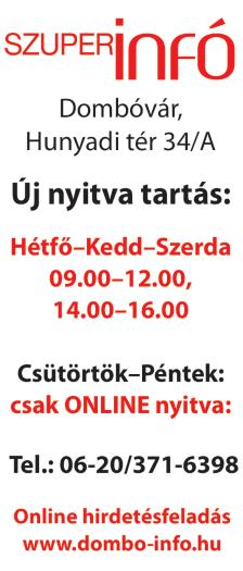 E-mail: dombovar iroda@szuperinfo hu www szuperinfo hu