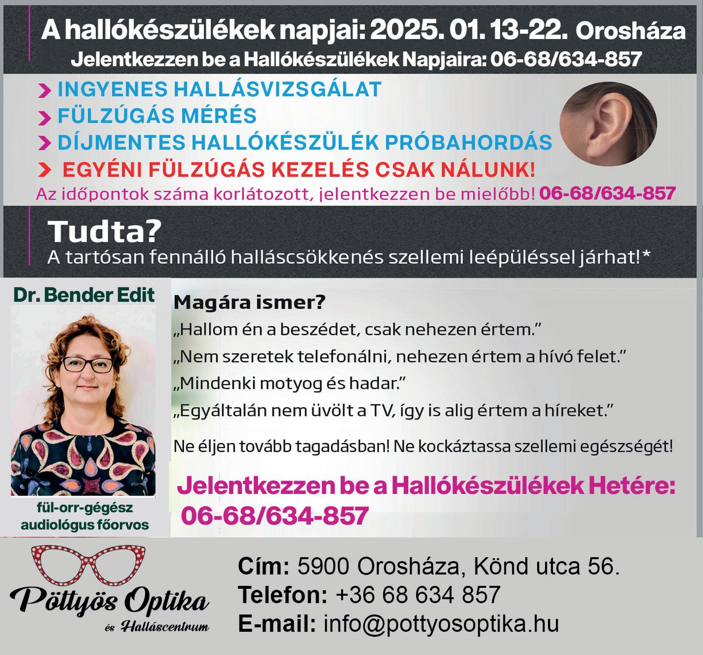 Orosháza, Könd u. 25. • Tel.: (68) 512-252 • Online hirdetésfeladás: www.ohinfo.hu • E-mail: oroshaza@szuperinfo.hu