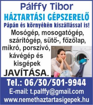 Pálffy háztartásigép szerviz.Tel.: 30/501-9944