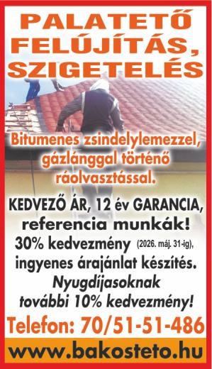 Ács, tetőfedő, bádogos munkát vállalunk. Régi és új tető készítése, palatetők javítása, szigetelés, teraszok, garázsok építése. Lindab cserepeslemezt és cserepet kedvező áron, bármilyen tetőre. Dryvitozást, festést vállalunk.Saját anyaggal dolgozunk. Ingyenes felmérés, 30% kedvezmény 2026.04.30-ig. +3670/573-4400