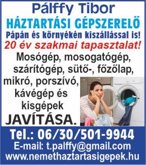 Pálffy háztartásigép szerviz. Tel.: 30/501-9944