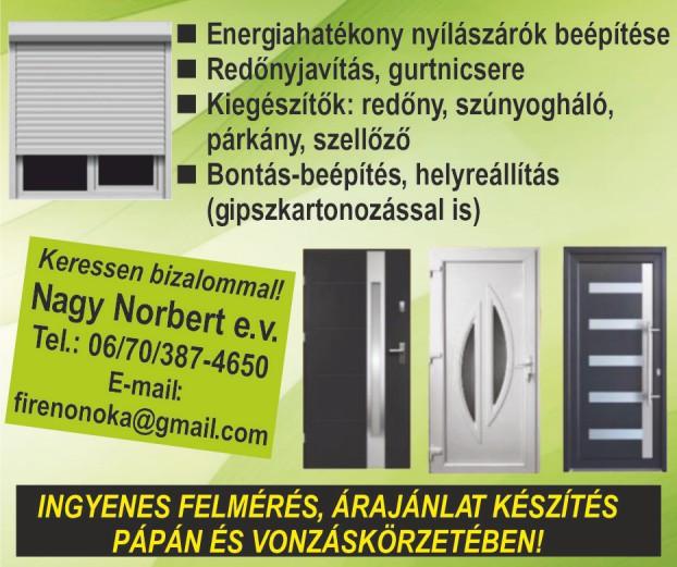 Redőnykészítés, javítás, faredőny, szalagfüggöny, szúnyogháló, harmonikaajtó gyártás, ablakszigetelés. Tel.: 06/89/314-595, 06/20/338-5554 Régi tetők felújítását, ereszcsatornázást, cserepes lemezelést, kúpkikenést, széldeszkázást, lapostető szigetelést, kisebb javításokat vállalunk. Nyugdíjasoknak 10% kedvezmény április 30-ig. 06-30/139-3271