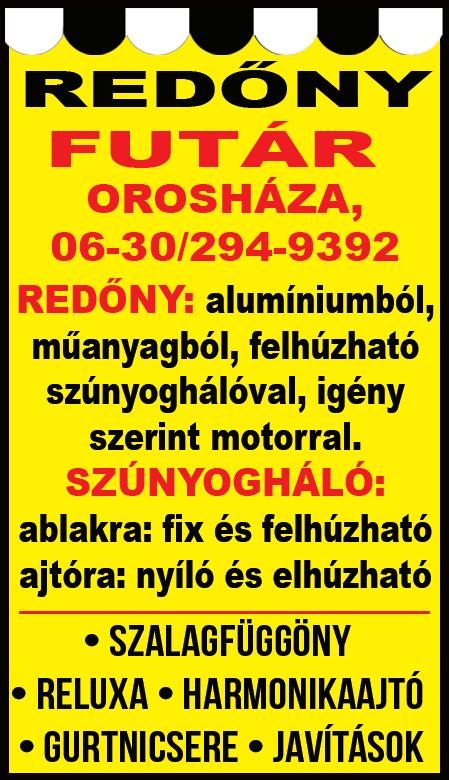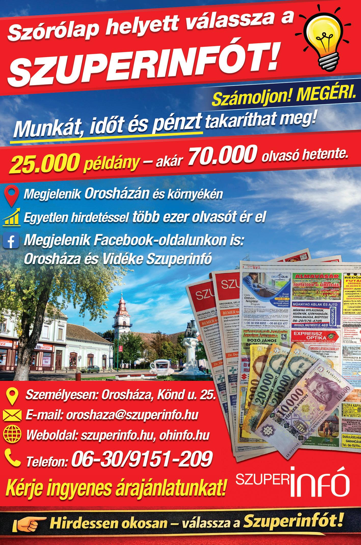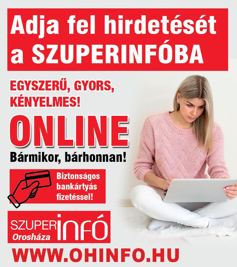 Orosháza, Könd u. 25. • Tel.: (68) 512-252 • Online hirdetésfeladás: www.ohinfo.hu • E-mail: oroshaza@szuperinfo.hu