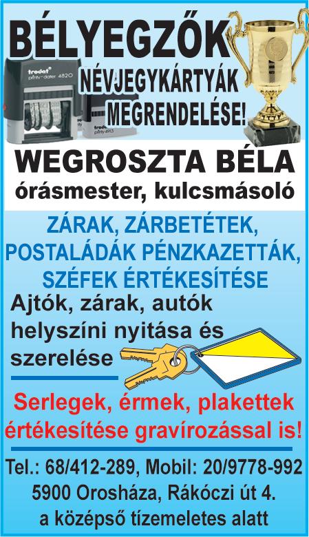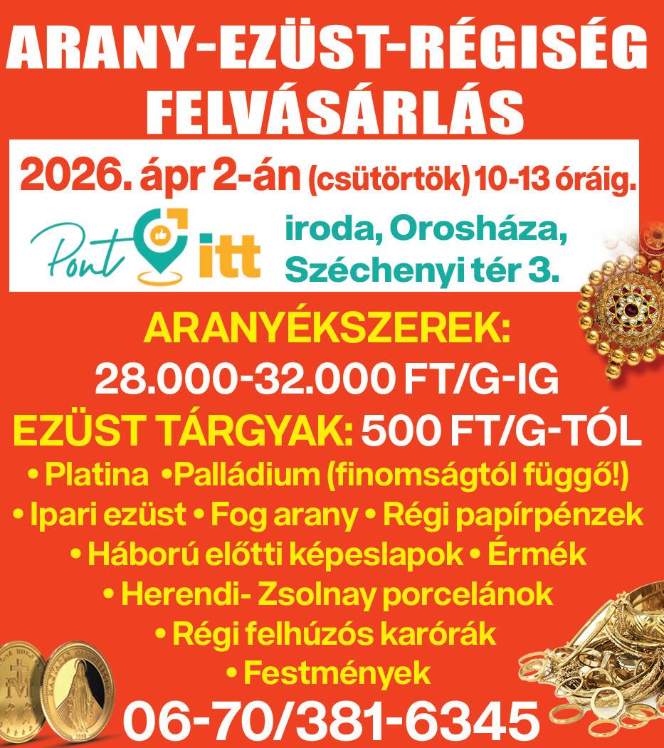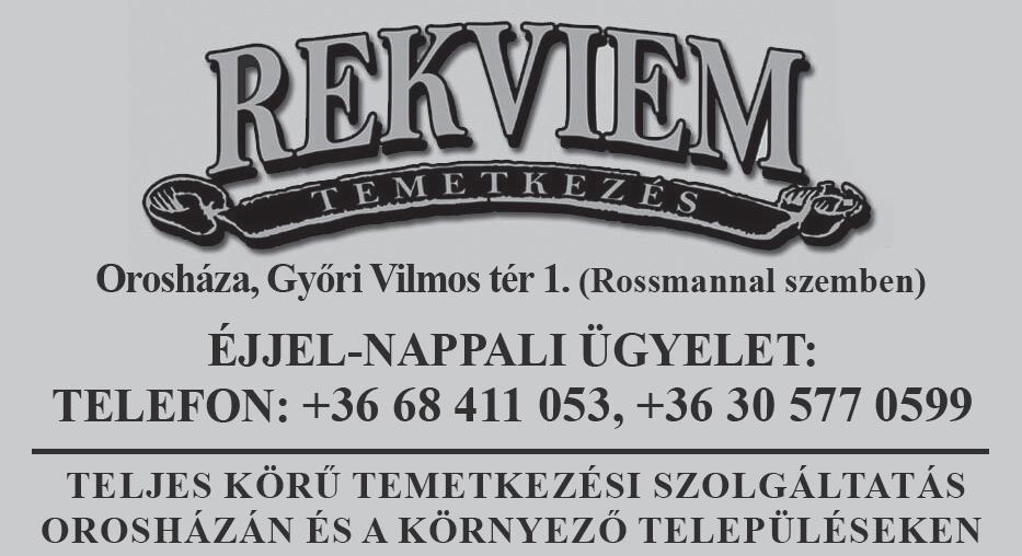 Orosháza, Könd u. 25. • Tel.: (68) 512-252 • Online hirdetésfeladás: www.ohinfo.hu • E-mail: oroshaza@szuperinfo.hu