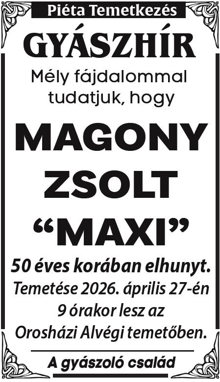 Tisztelt Hirdetőink! Az ünnepi hétvége miatt hirdetéseit 2026. április 29., szerda, 10:00 óráig adhatja fel.