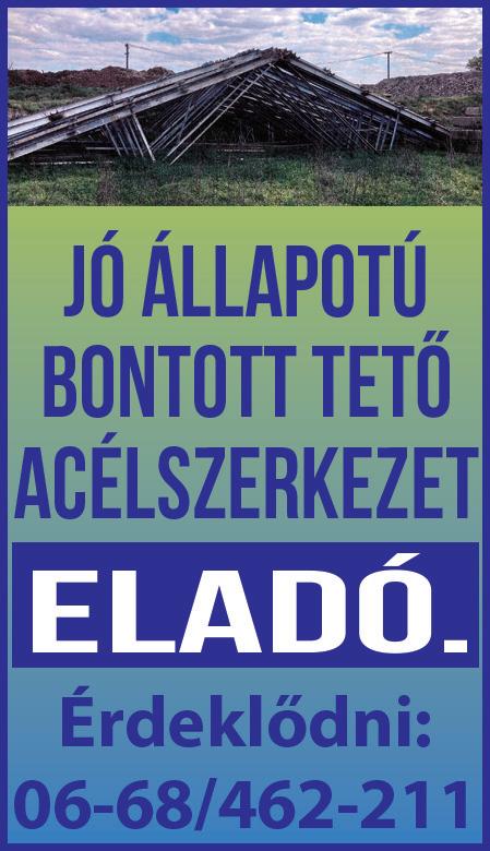 • Bontásból eladók: villanybojler, cserepek, kúpcserép, faablakok, műanyagablakok, bejárati ajtók, üvegfalak, gázos vízmelegítő. Palát, cserepeket veszek. Orosháza, Székács u. 54. sz. Tel.: 06-20/361-2301