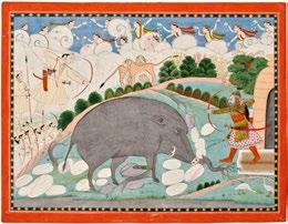 Illustration to Kirata-Arjuniya Episode, from a Mahabharata Series Attributed to Purkhu Kangra, India, circa 1820 Opaque watercolor on paper, heightened with gold Image: 13 ¾ x 18 ½ in. (34.93 x 47 cm.)