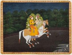 Baz Bahadur and Rupmati Riding at Night Mughal, probably Awadh, circa 1800 Opaque watercolor heightened with gold on paper Image: 7 3/4 x 10 1/8 in. (19.7 x 25.7 cm.)