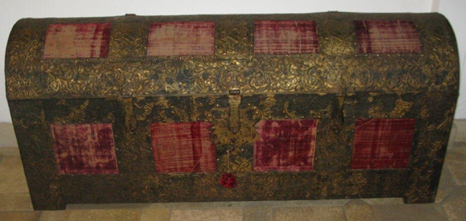 A late 15th century Venetian cassone which belonged to Marco Barbarigo (1413-1486), the 73rd Doge of Venice. He was the owner of this still intact cassone (or lift-top chest) with its wooden core, red velvet panels, and its profusion of metal decorations all depicting the Doge's personal “impresa.”