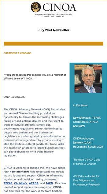 We would like to take this opportunity to introduce our members to Ronati, a company that offers technology based solutions to dealers in tracking, organizing and posting and de-listing inventory. The AADLA has partnered with Ronati on several occasions and we look forward to doing more with them in the future. If you would like to learn more about Ronati, we suggest that you go to www.ronati.com. In the next issue of The League Journal, they will present a more detailed and nuanced description of their goals are for the art and antiques businesses.