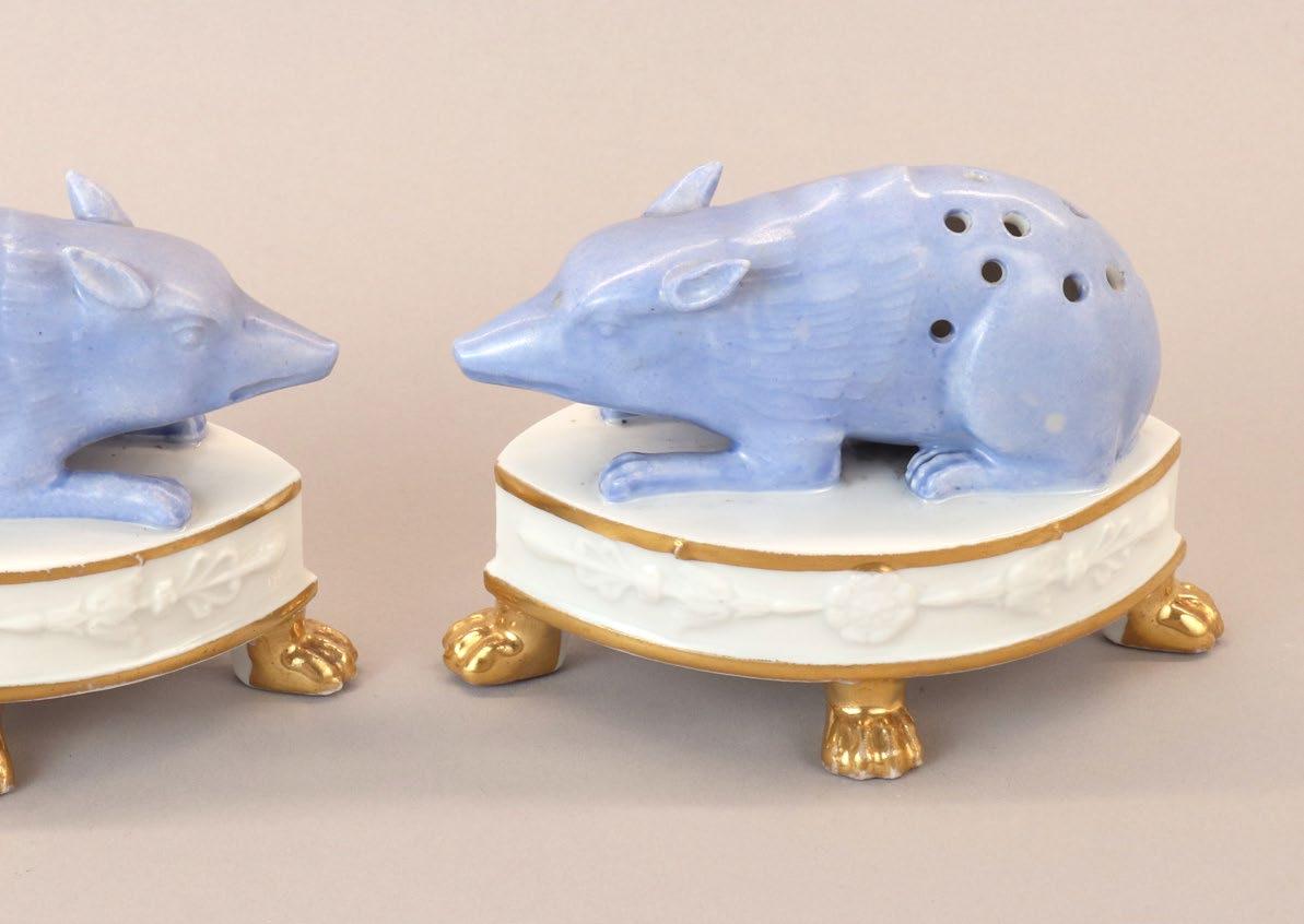 Descended through the family. These unusual curios, which would have held small silver skewers, perhaps for olives, were probably purchased new from a fine retailer in Philadelphia in the early 19th century, or they might have been purchased by the family on a trip to Paris. (Private collection, St. Louis.)