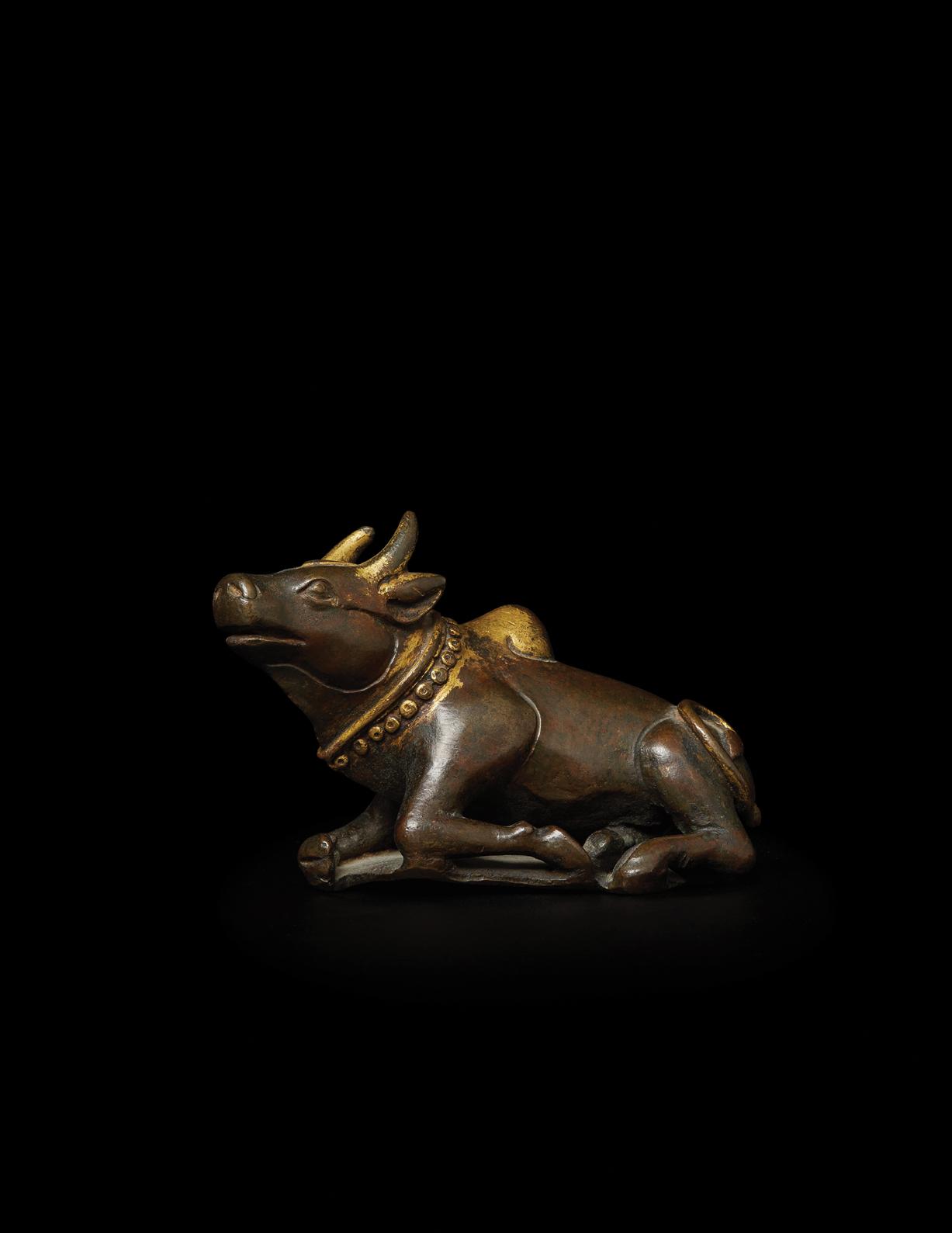 A gilt-bronze figure of Nandi