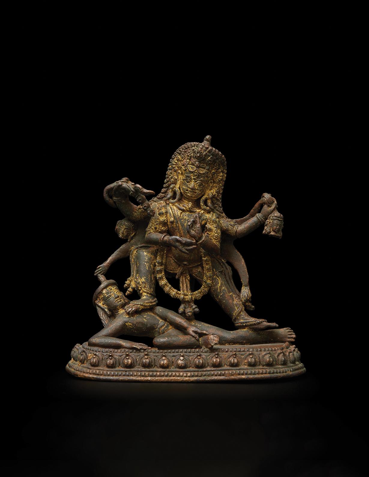 A gilt-bronze figure of Kala Bhairava