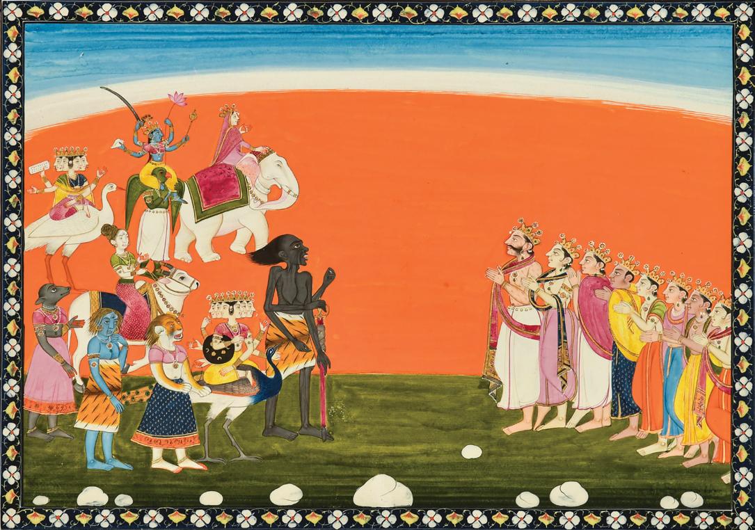 This painting belongs to the same set as the illustration of Brahma; from the same series as The Liberation of Gajendra, illustrated by Andrew Topsfield in In the Realm of Gods and Kings, New York, 2004, p.117, no. 43, formerly in the collection of Cynthia Polsky and sold at Bonhams New York, 16 March 2015, lot 70.