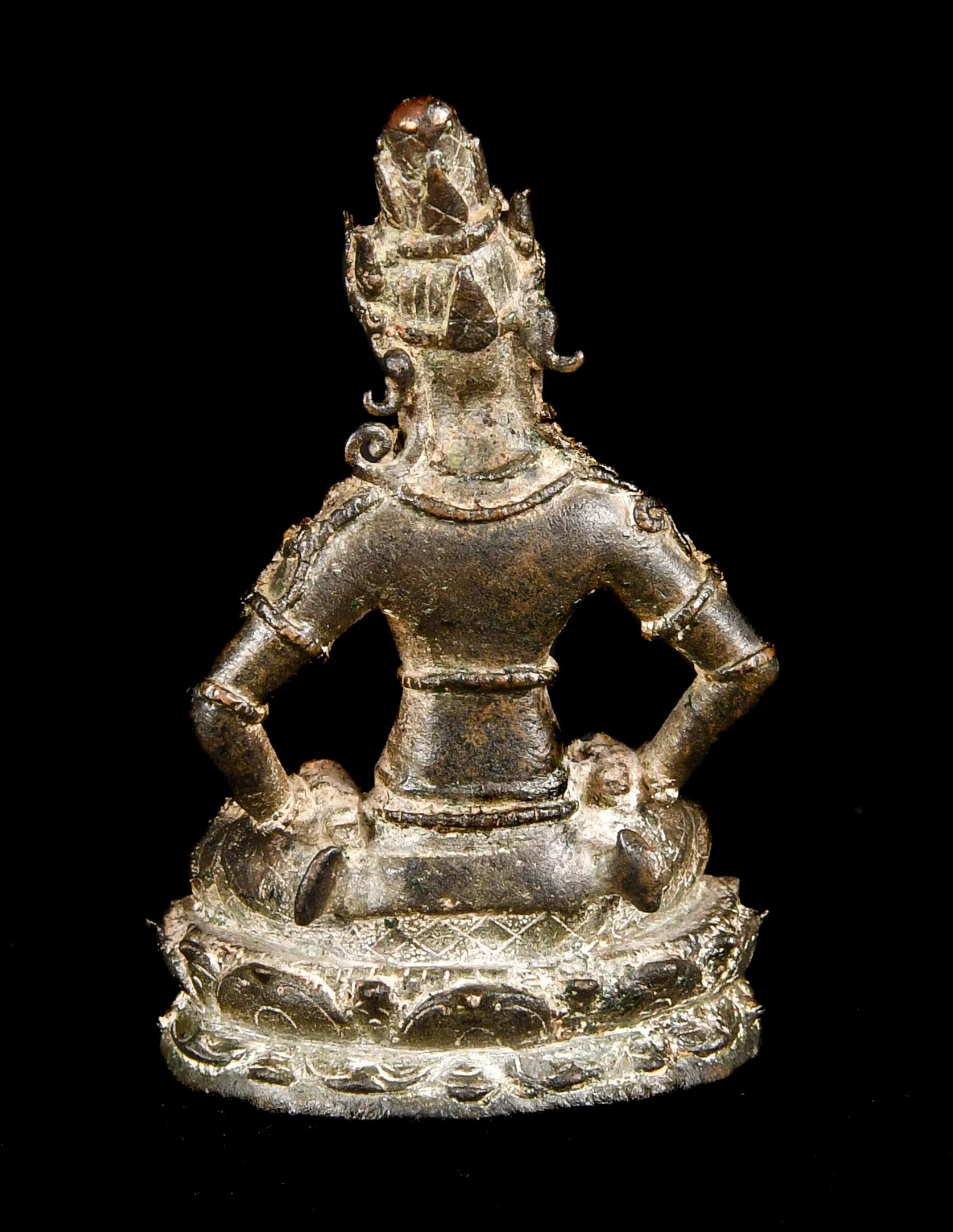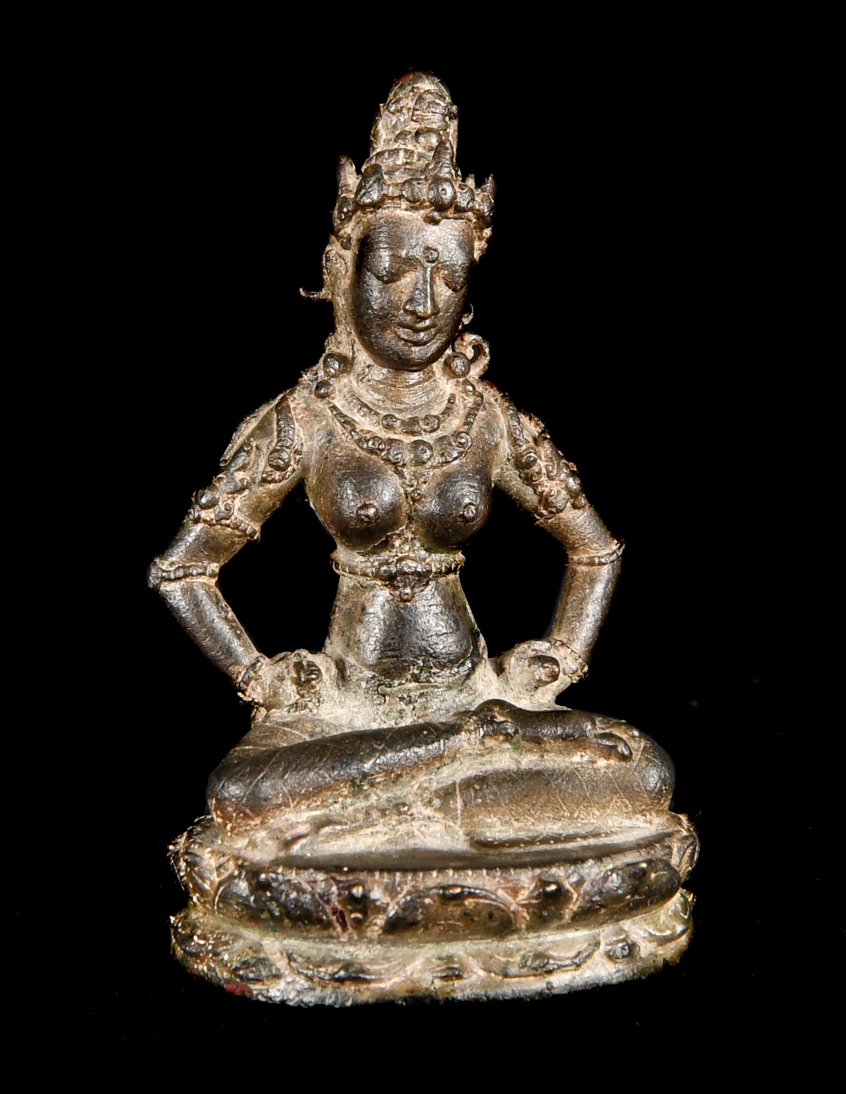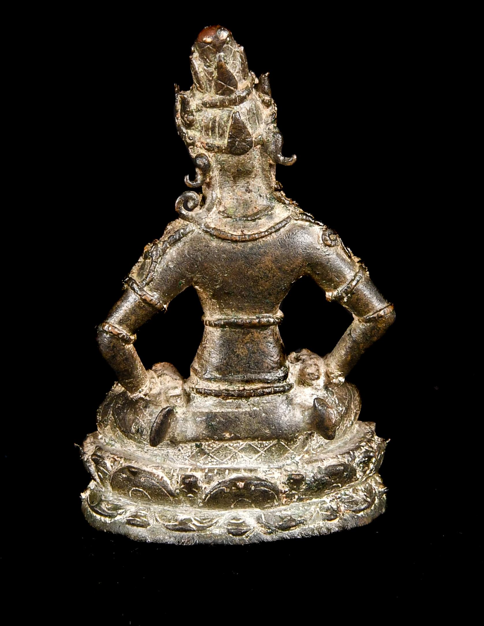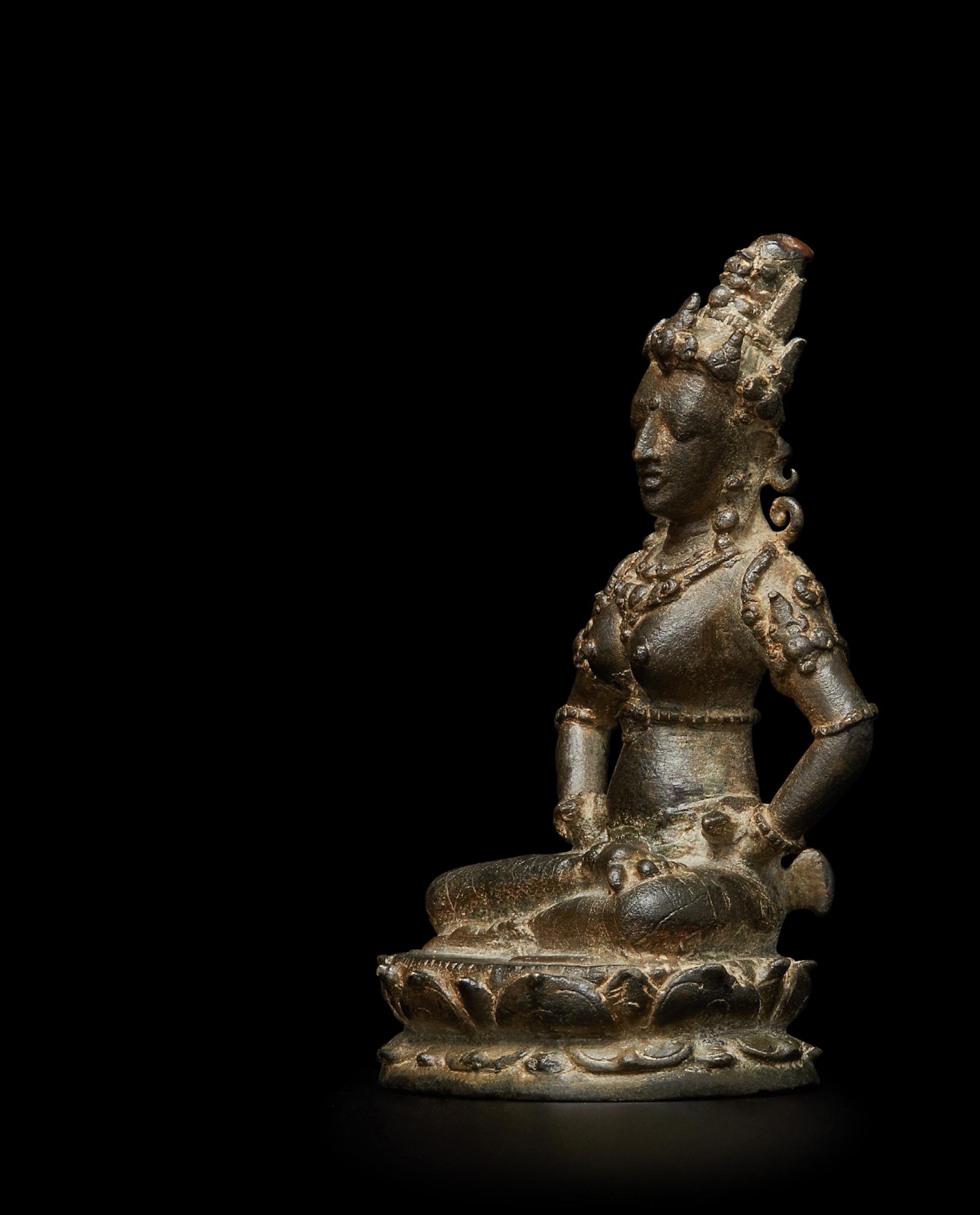 Esoteric Mahayana Buddhism was well grounded in the Indonesian archipelago by the seventh century, largely due to the influence of maritime trade. By the late tenth century eastern Java was an important center of patronage. The present bronze almost certainly comes from the most well-known hoard of Javanese sculptures, found in 1913 in the village of Chandirejo, in Nganjuk district in Eastern Java (see Lerner and Kossak, The Jewel in the Lotus, Metropolitan Museum of Art, 1991, p. 200). Many of the ninety-or-so sculptures ended up in museum collections, but some were immediately sold to private collectors and the present fell in that category.