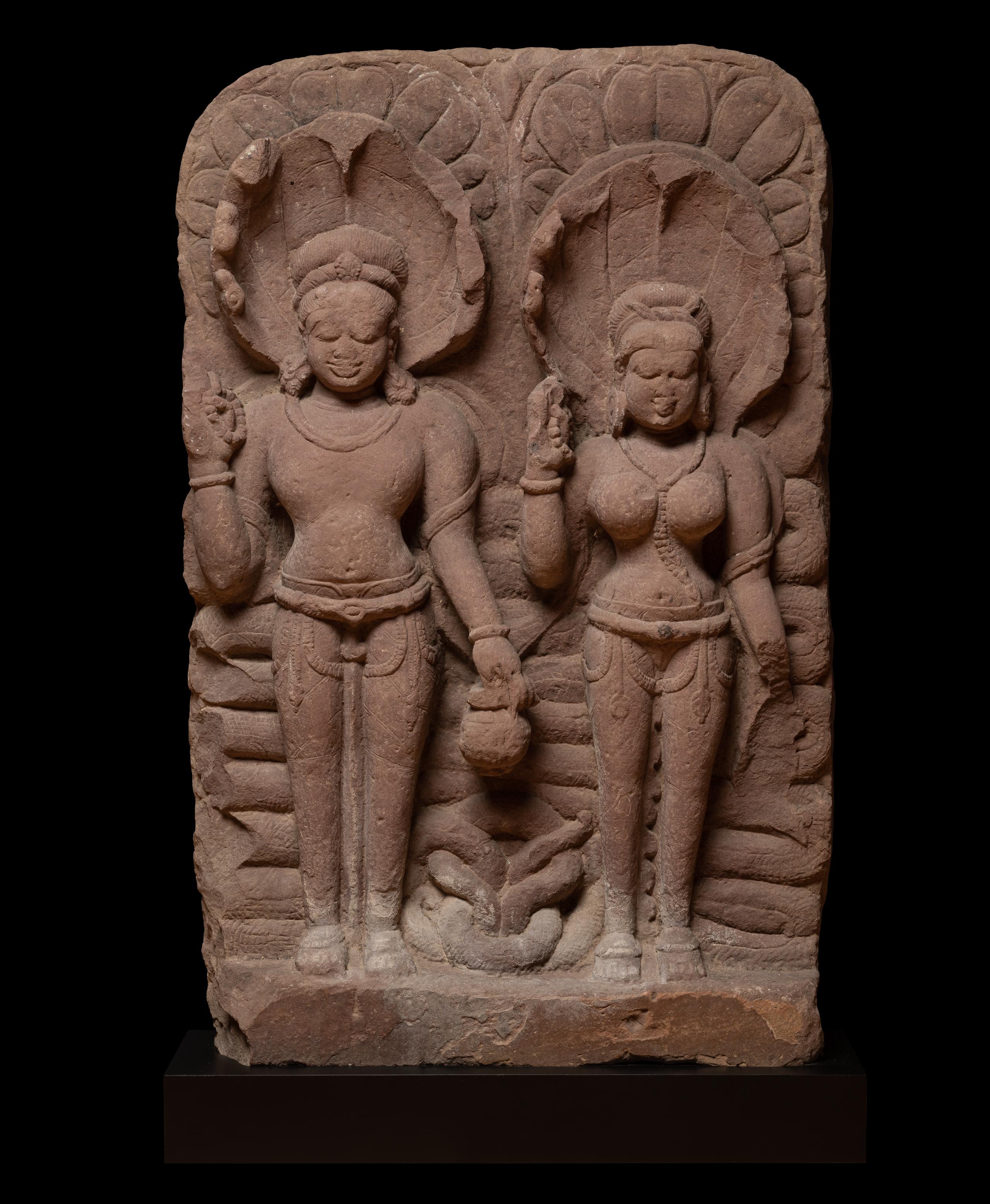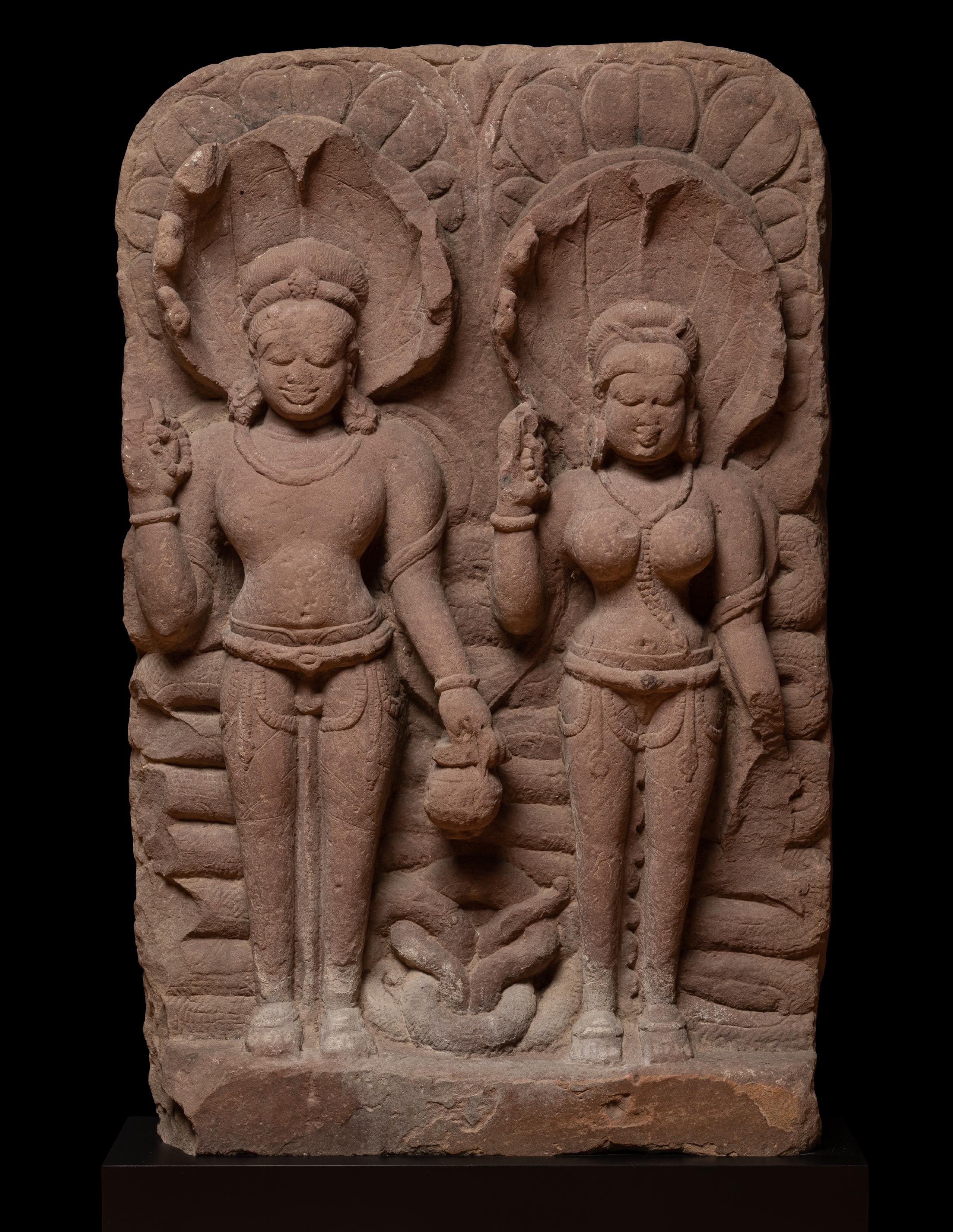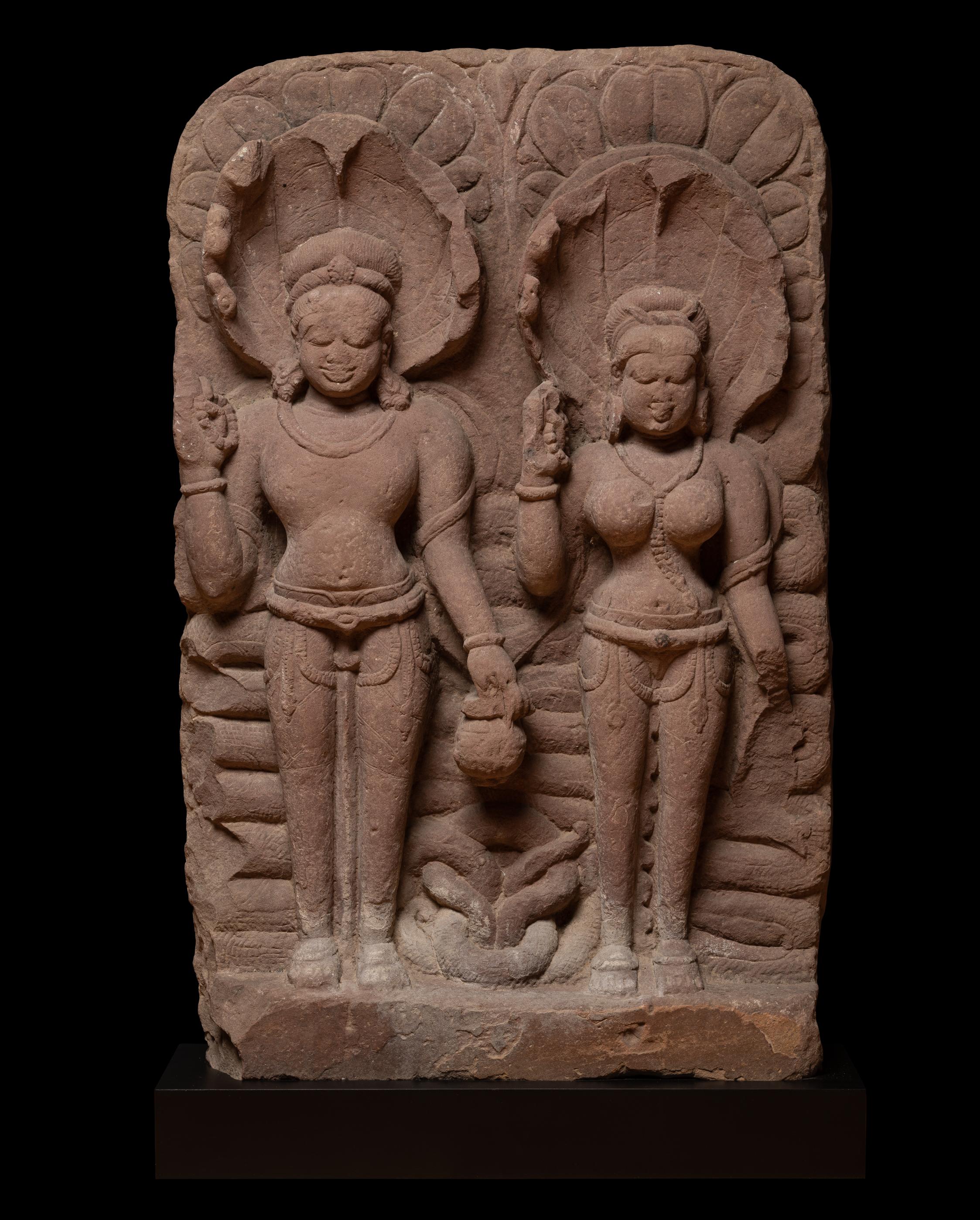 A sandstone relief of a Nagaraja couple