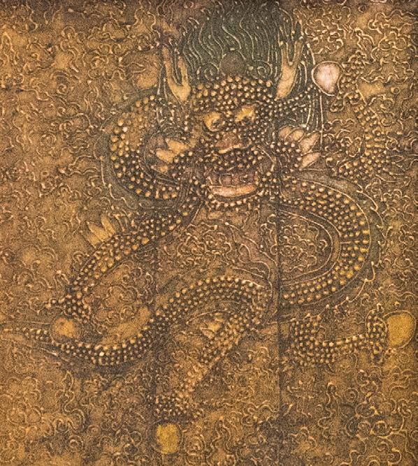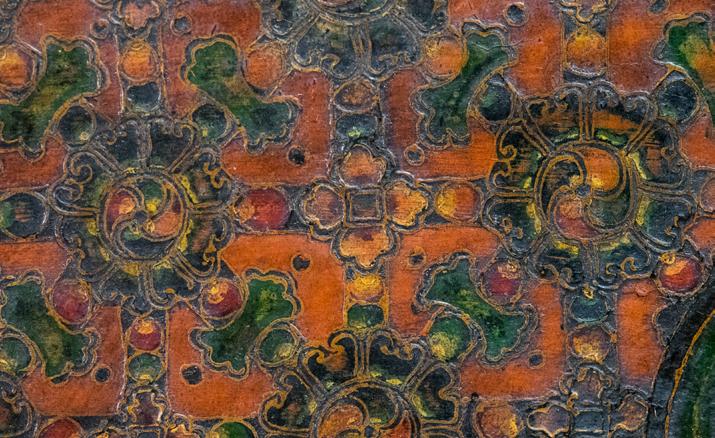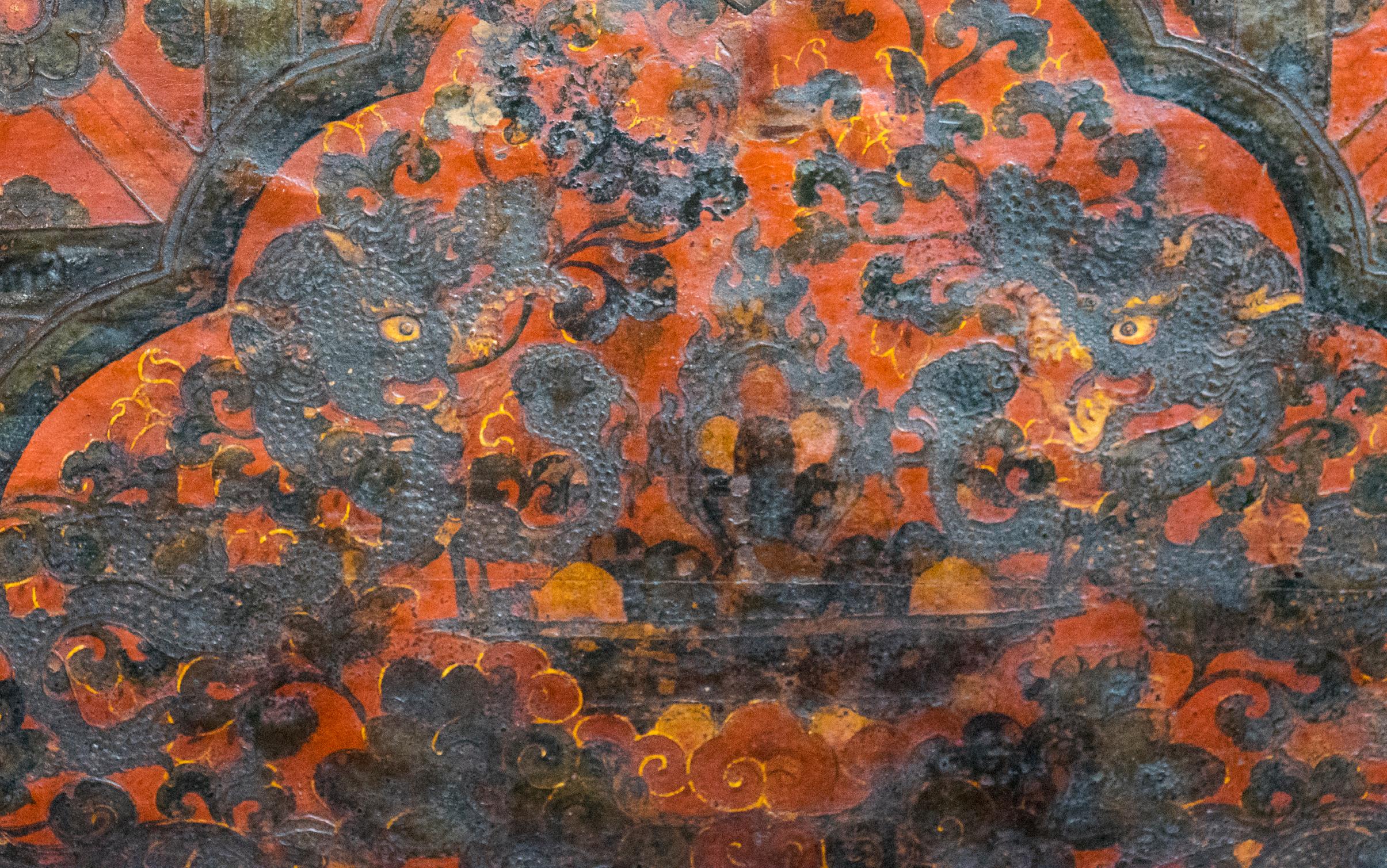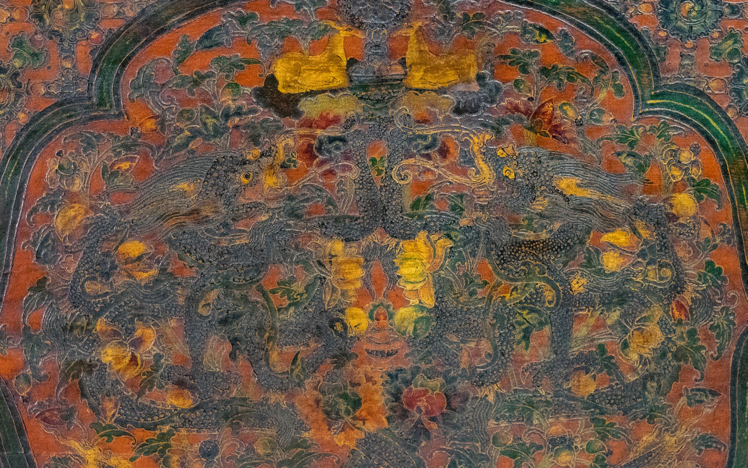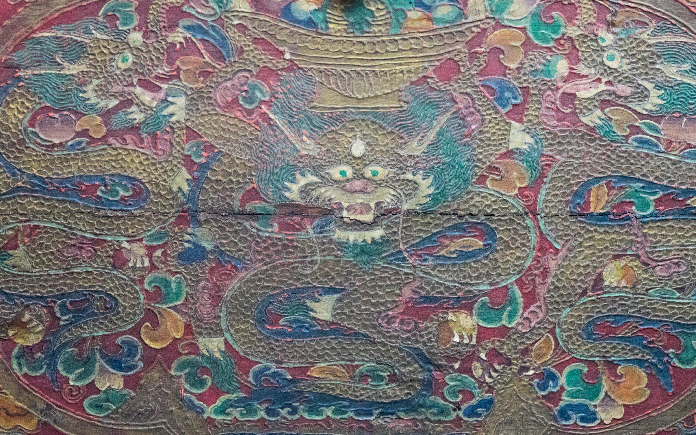 The present chest was likely used by a wealthy Tibetan to store their personal belongings. Non-religious symbols like the dragon were popular among lay people, as they were believed to reinforce auspicious outcomes like a long and prosperous life.
