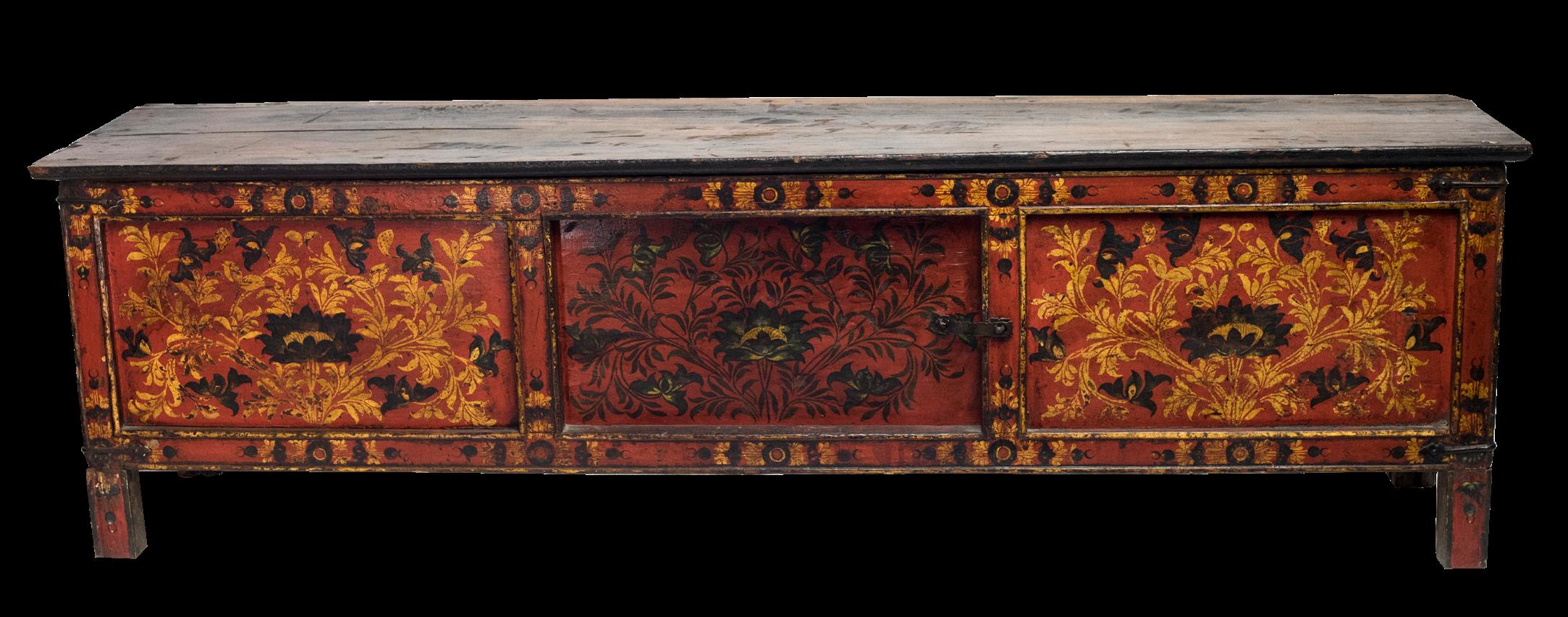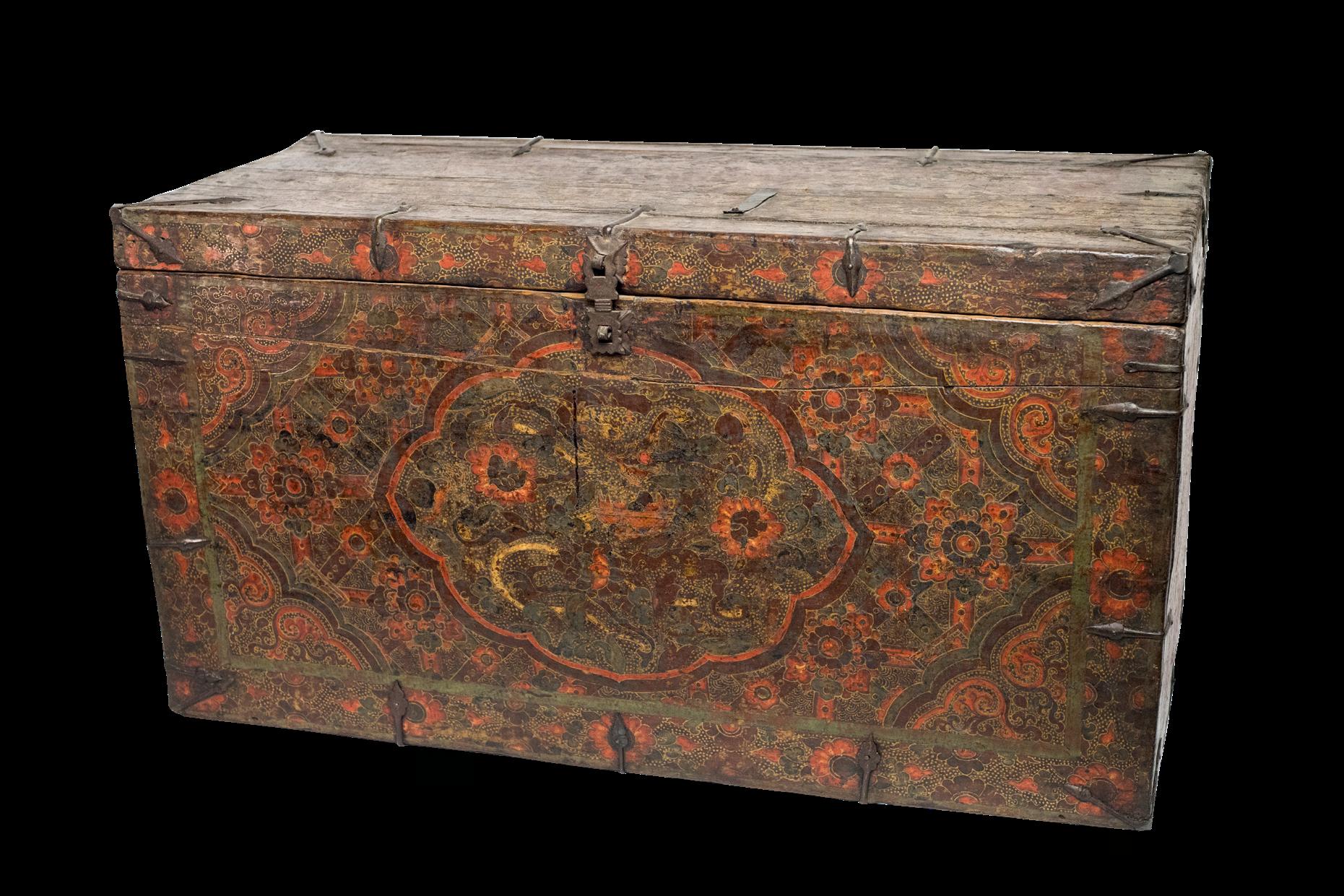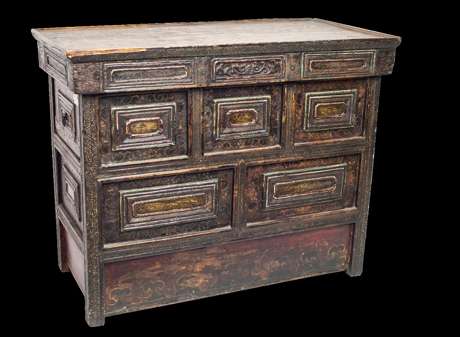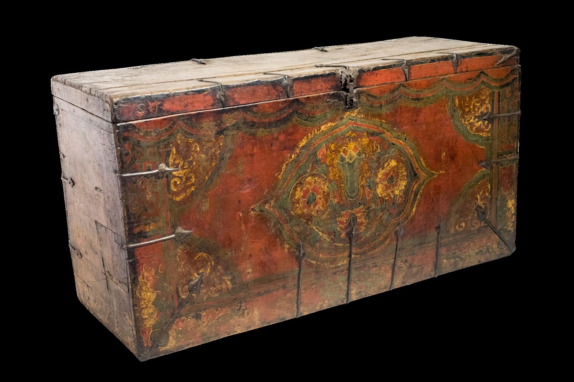Yet, a distinct Tibetan style is apparent, as furniture making guilds were formed in the seventeenth century under the fifth Dalai Lama to develop a cohesive approach. The collection that follows includes many fine examples of traditional Tibetan trunks.