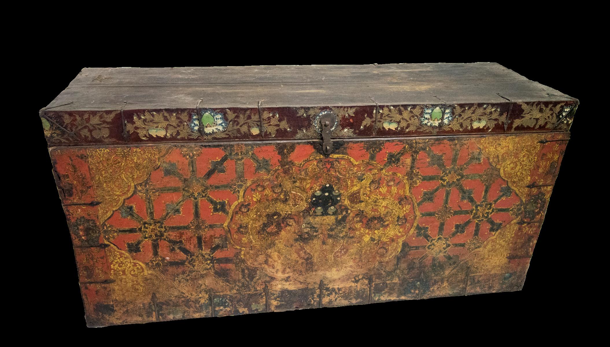 Highly-Embellished Trunk with a Front-Facing Dragon at Center 18th-19th Century Himalayan
