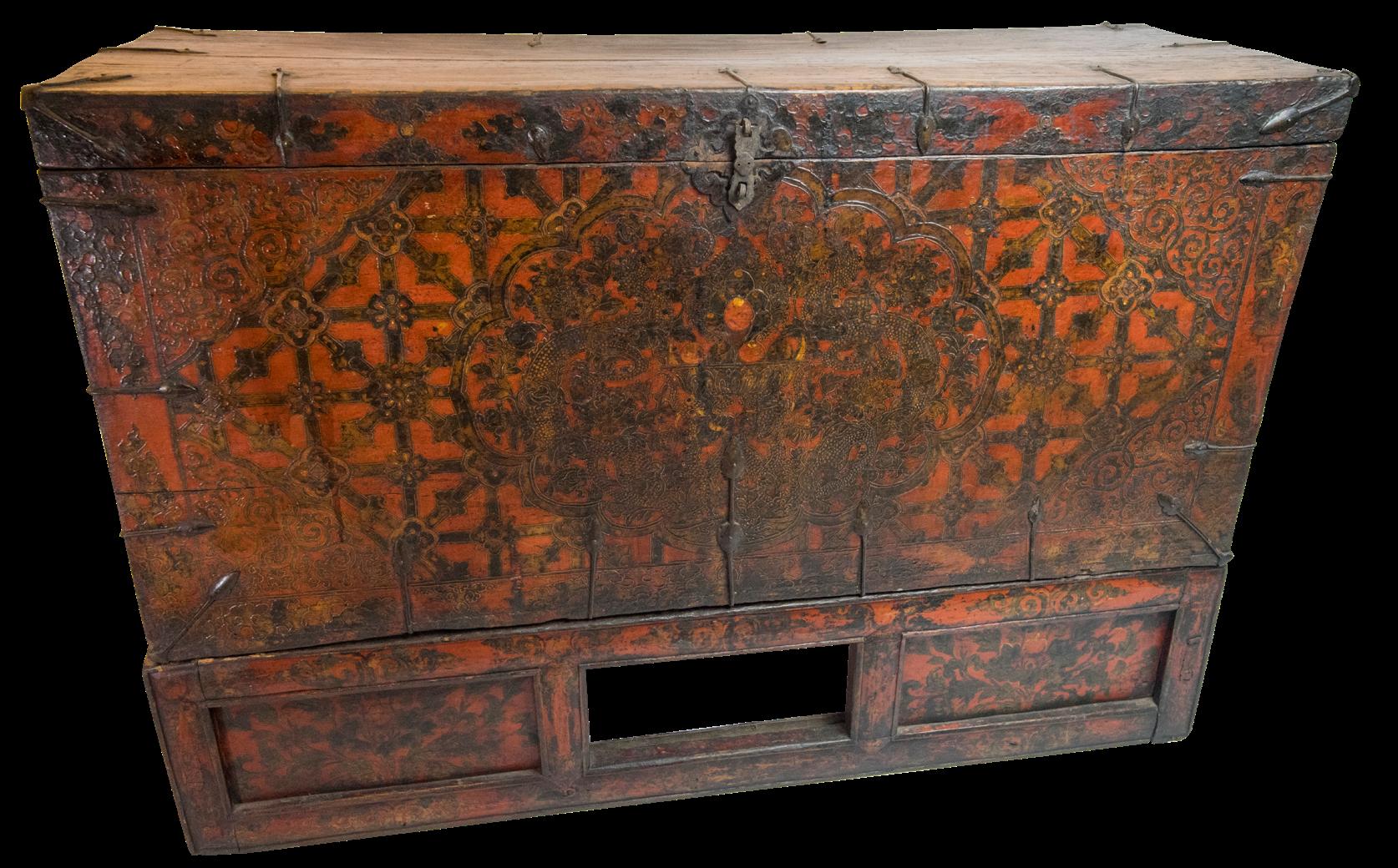 Red Trunk with Kirtimukha ( zi-bag ) and Visvavajra ( dorje gya-tram ) Motifs
