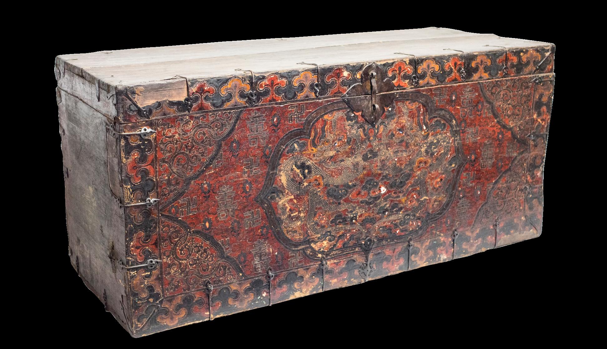 Dragon Trunk with Shou Characters and Swastika ( yung-drung ) Motifs