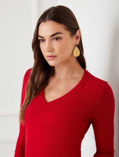 Comfy and cozy, you'll find yourself turning to this top time and time again. 96% Viscose, 4% Spandex. Brushed rib knit. Made in USA.