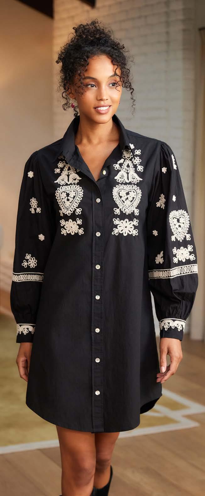 A peek of white at the collar and hem gives the illusion of two layered pieces in one.
