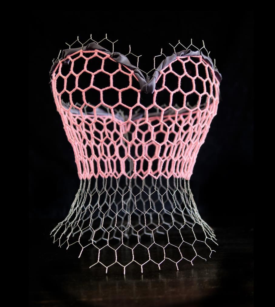 Corset (I'm In Love with Your Body), (2022), Chicken wire, yarn, 14 x 12 x 13 inches