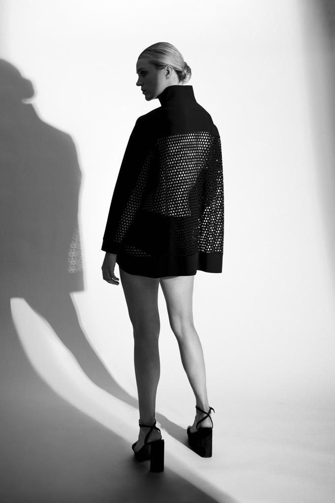 Katrin Schnabl is a designer, artist, and educator. Trained in dance, Schnabl moved to New York from her native Germany, where she honed her skills creating costumes for dancers. She shifted towards fashion after graduating from the Fashion Institute of Technology. Relocating to Chicago, she has made a huge impact as Chair of the Department of Fashion Design at The School of the Art Institute. Her garments move sensuously on the body, alongside her spatial 3-D kinetic portal paintings and scrolls, allowing her to intersect dance and movement with fashion and installations. Her “interactive membranes,” emphasize the dualities between the viewer and wearer, inner and outer.