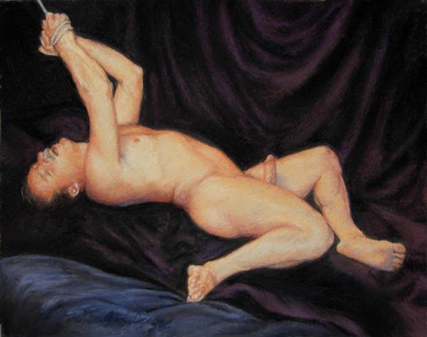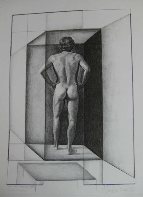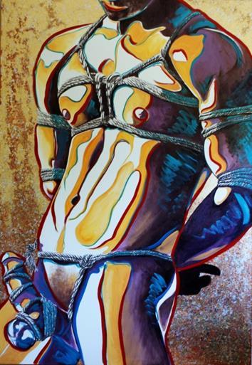 My goal in this exhibit, Man as Object: Reversing the Gaze, is to turn the tables and to exhibit works that put the male in the position of subject and spectacle. Not only will the male be taking on the traditional female role, but the surveyor is now purely female, no longer a “masculine” part of the female, thus creating a truly feminist stance. The male is the spectacle for a woman’s enjoyment or mere viewing.