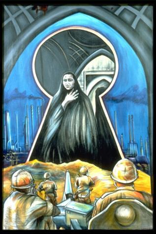 (left) Carolyn Weltman. Gods and Men. 2008. Oil on canvas. 21 x 26 x 2 inches.