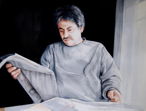 (right) Mette Tommerup. Newspaper. 2010. Oil on linen. 16 x 12 inches.
