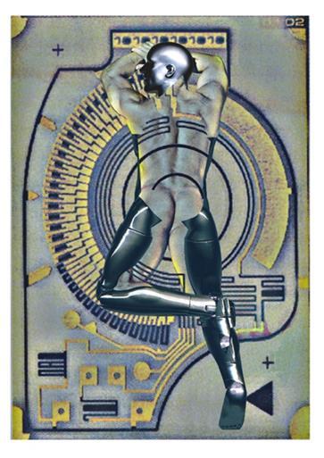 Corinne Whitaker. Ornamental Man. 2010. Plexi and gold foil. 24 x 24 inches. *