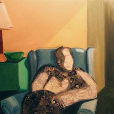 (left) Mette Tommerup. Burning Sofa. 2010. Oil on linen. 12 x 16 inches.