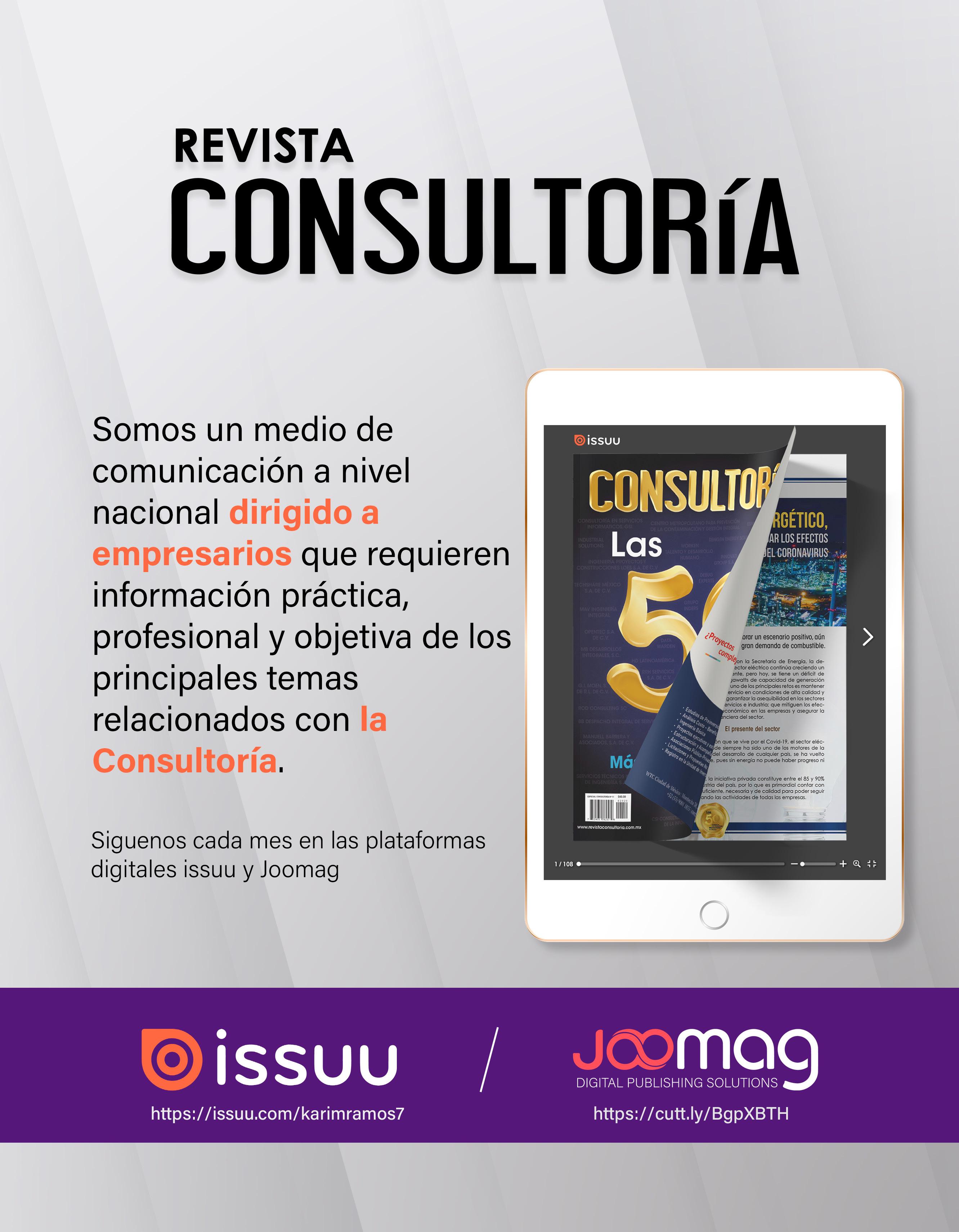 “CONSULTORÍA”, Año 13, Núm. 122, julio 2023, es una revista mensual. Editada por Héctor Ramos Romero. Domicilio de la publicación: Paseo de Los Cipreses #188 Col. Paseos de Taxqueña Alcaldía Coyoacán C.P. 04250 Ciudad de México. Reserva de Derechos al Uso Exclusivo No. 04-2013-053010005100-102, Número de Certificado de Licitud de Título y Contenido: No.15240. Los invitamos a seguir Revista Consultoría a través de los Formatos Digítales: Issuu y Joamag, así como en nuestras redes sociales. Distribución: Mensajería especializada. Todos los derechos reservados. Prohibida cualquier reproducción sin autorización expresa de los editores.