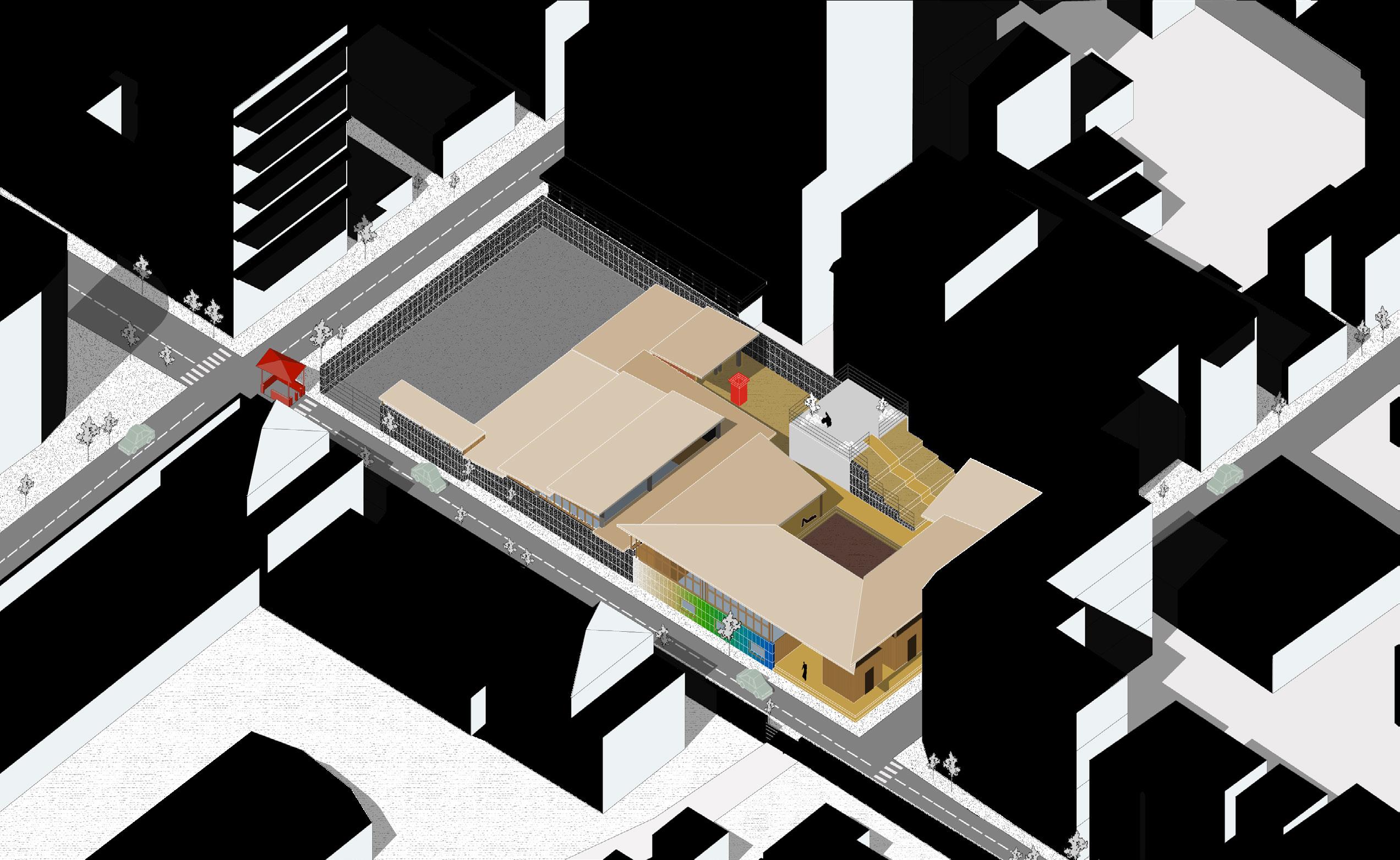 La propuesta busca restaurar un vacío urbano mediante un equipamiento autosuficiente que integre infraestructura ecológica y espacios de encuentro y aprendizaje social.