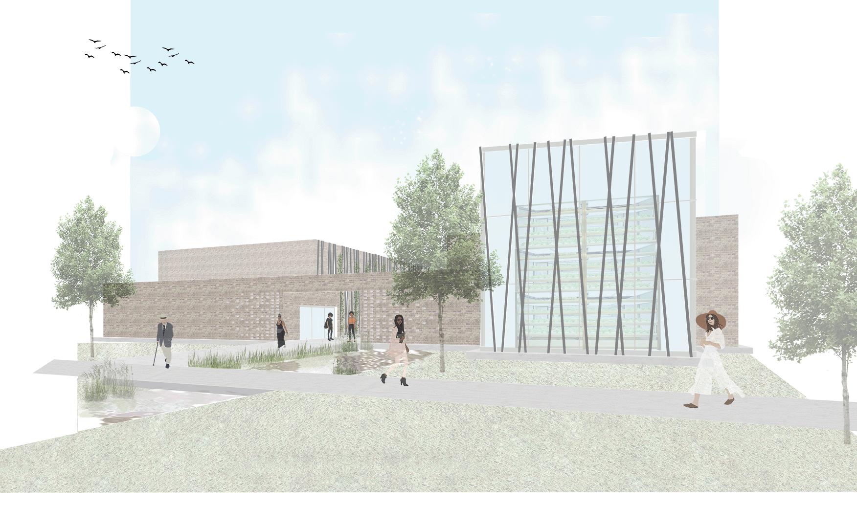 ein Gemeindezentrum entstehen soll, um den Bewohnern Raum für soziale Interaktionen bieten zu können. Neben dem Freizeitangebot soll das neue Zentrum Urban Agriculture für die Anwendung im Eigenheim lehren und als regionale Lebensmittelproduktion dienen.
