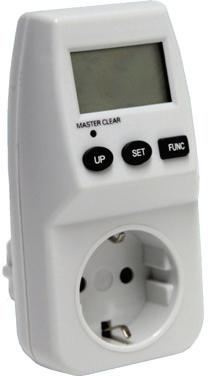 Selvitä kotisi sähkösyöpöt energiankulutusmittarin avulla. Ilmoittaa kuluvan kellon ajan, verkkojännitteen, verkkovirran ja sähkövirran.